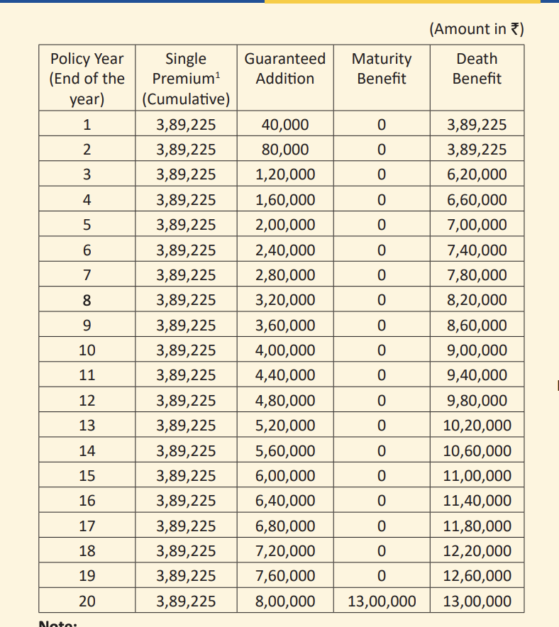 The plan is specifically designed to have an adequate corpus to meet the higher education and other needs of your child. It facilitates accumulation of corpus through Guaranteed Addition.